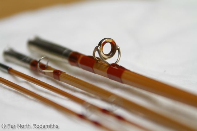 Hex 3/2 - 8'0" 5wt Medium Flamed | Cardinal Wraps w/ Orange Tipping